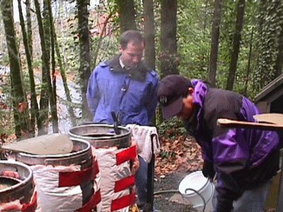 Wetting out grain for the mash. |